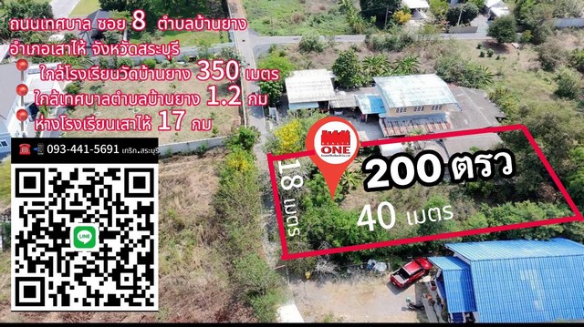 ขายที่ดิน 200 ตารางวา ต.บ้านยาง อ.เสาไห้ จ.สระบุรี ใกล้วัดบ้านยาง เขตเทศบาลบ้านยาง ติดต่อ 0934415691คุณเกริก