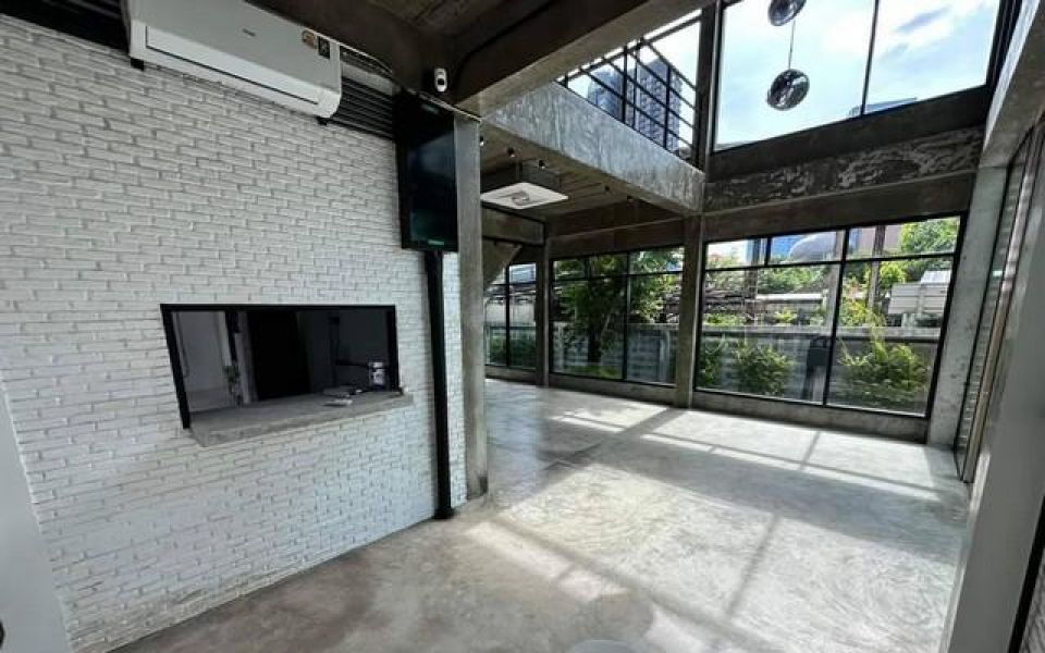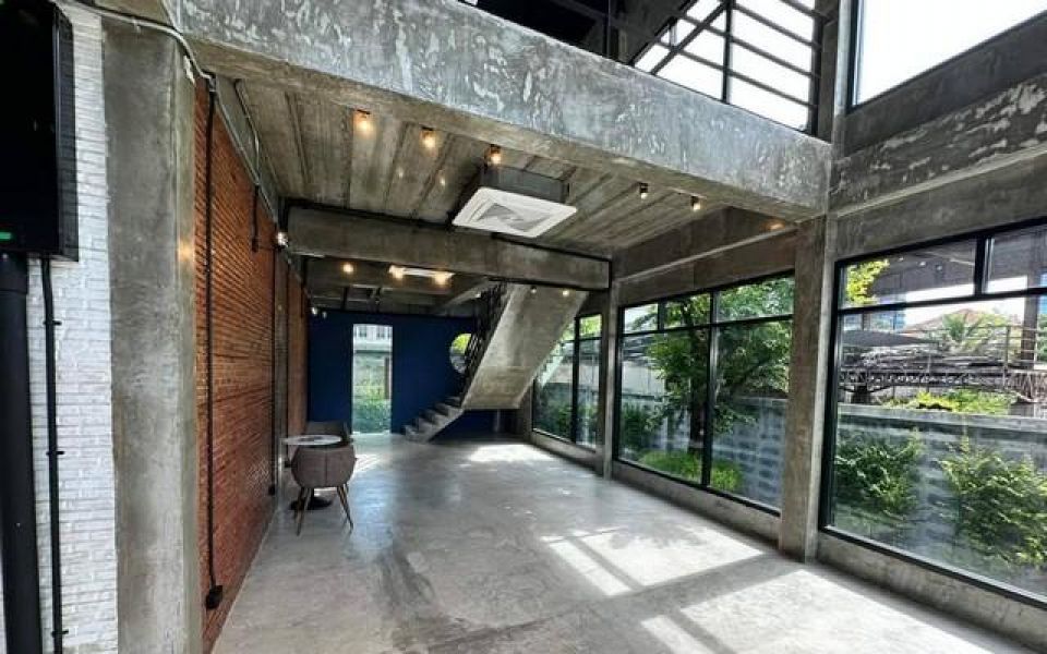อาคาร 2ชั้น ลอฟท์ดีไซน์ ใกล้ซอยเย็นอากาศ พระราม 3 สาทร ขนาดที่ดิน 147 ตารางวา ขนาดอาคารพื้นที่ 154 ตารางเมตร ชั้น 1-2 เป็นพื้นที่โล่งๆ สามารถกั้นห้องเองได้ 2 ห้องน้ำ ที่นั่งกลางแจ้ง 20 ที่นั่ง ที่จอดรถ 10 คัน ภูมิทัศน์อันสวยงาม