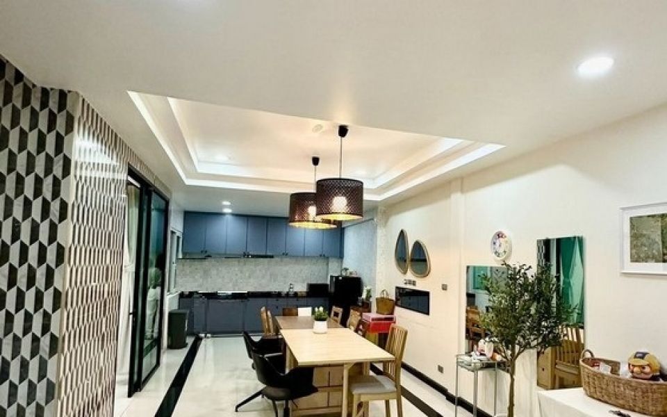 พื้นที่ใช้สอย 250 ตารางเมตร 5 ห้องนอน 3 ห้องน้ำ แอร์ทั้งหลังจำนวน 7เครื่อง จอดรถยนต์ภายในบ้านได้ 1 คัน