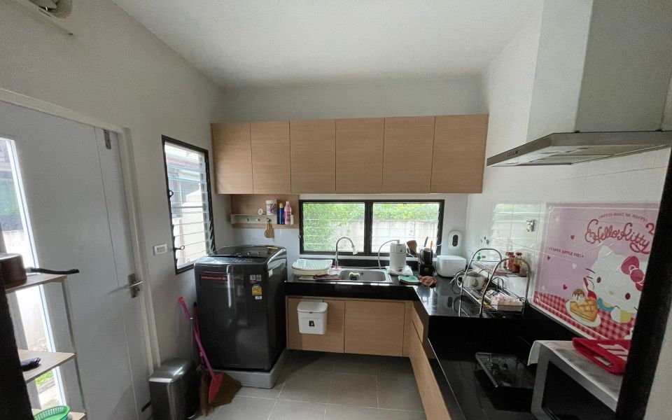 รายละเอียดทรัพย์ : – เนื้อที่ 50 ตร.ว พื้นที่ใช้สอย 165 ตร.ม – หน้าบ้านหันทิศเหนือ ไม่มีบ้านฝั่งตรงข้าม – 3 ห้องนอน 3 ห้องน้ำ พร้อมแอร์ 4 เครื่อง – 1 ห้องนั้งเล่น 1 ห้องรับแขก – 1 ห้องครัว 1 ห้องทำงาน – พื้นบนลามิเนต พื้นล่างกระเบื้อง – ต่อหลังคาสำหรับจอดรถ – จอดรถได้ 2 คันในบ้าน อีก 1 คันจอดหน้าบ้าน