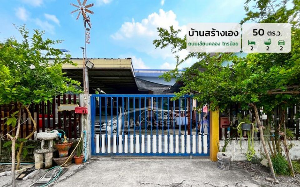 ขายบ้านสร้างเอง ชั้นเดียว ถนนเลียบคลองไทรน้อย หลังเทศบาลพิมลราช ใกล้รถไฟฟ้าสายสีม่วง สามารถเดินทางได้หลายเส้นทาง เนื้อที่ 50 ตร.ว. ขายเพียง 3,190,000 ล้านบาท