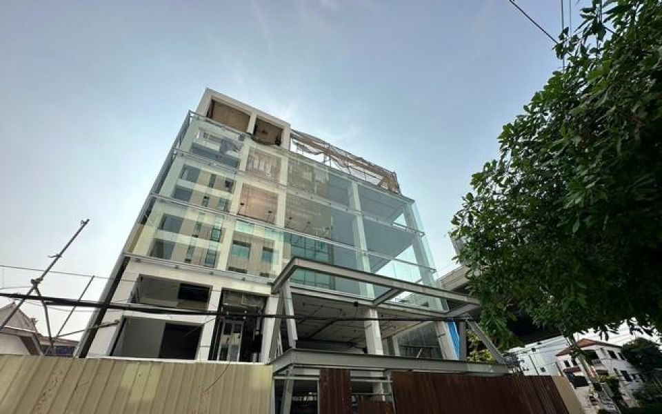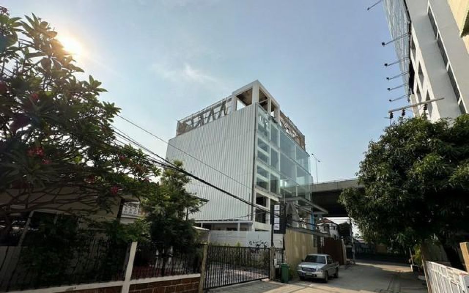ขายอาคารสำนักงานสร้างใหม่ 5 ชั้น มีลิฟท์โดยสาร และลิฟท์จอดรถ ติดถนน 2 ด้าน ย่านพระราม 9 ใกล้ห้างเดอะไนน์