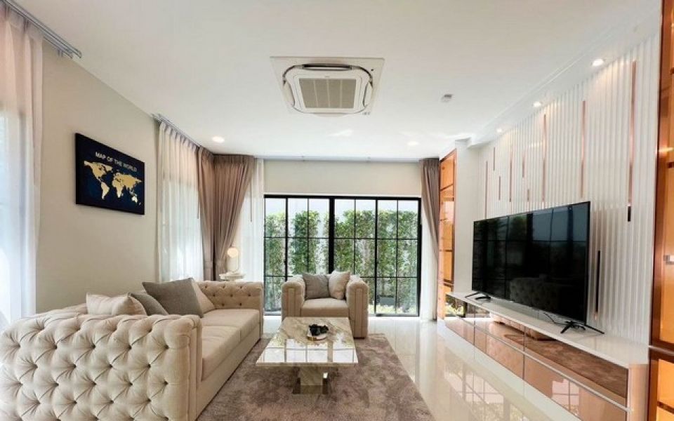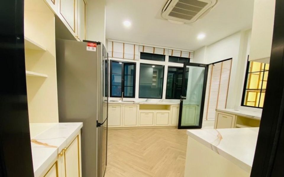 ขายและให้เช่าด่วน บ้านเดี่ยว 2 ชั้น ม.นันทวัน พระราม 9-กรุงเทพกรีฑาตัดใหม่ บ้านใหม่ โครงการคุณภาพจาก แลนด์ แอนด์ เฮ้าส์ สไตล์ French Eclectic เนื้อที่ 106 ตรว. พื้นที่ใช้สอย 303 ตรม. มี 4 ห้องนอน 5 ห้องน้ำ 3 ที่จอดรถ บ้านอยู่ถนนเมน ภายในตกแต่ง Built-in สวยหรู พร้อมเฟอร์นิเจอร์ และสิ่งอำนวยความสะดวกภายในโครงการครบครัน