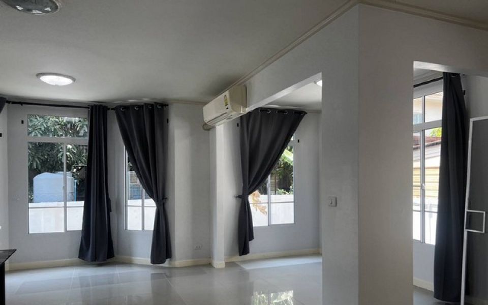 เนื้อที่ 100 ตารางวา จำนวน 2 ชั้น 3 ห้องนอน 3 ห้องน้ำ แอร์ 5 เครื่อง จอดรถ 3-4 คัน ติดผ้าม่านให้ทั้งหลัง